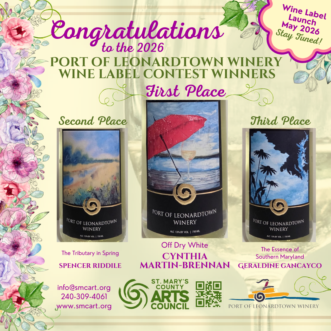 St. Mary’s County Arts Council has partnered with the Port of Leonardtown Winery for the 2nd Annual Wine Label Design Contest and new wine bottle release!