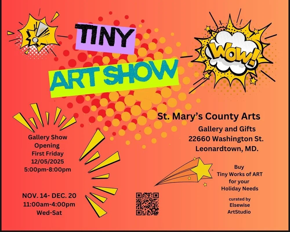 You have an opportunity to create your Tiny Art Show piece on site at Elsewise Art from 5 - 8 PM! A variety of free mediums will be available. Location: 22660 Washington St, Room 204, Leonardtown, MD (upstairs from St. Mary’s County Arts Council).