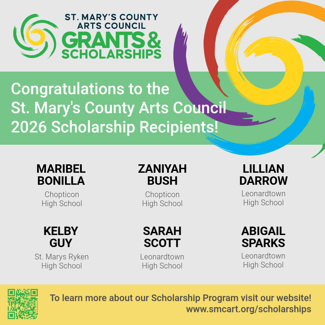 The St. Mary’s County Arts Council provides scholarships to support high school seniors who desire to continue with their studies of The Arts following graduation.